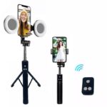 JC-18H Wireless Long Tripod Selfie Stick With Bluetooth Shooter Also Comes With Double Rechargeable Selfie Ring Light