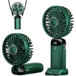 Portable Folding Hand-Held Cooling USB Rechargeable Fan With Led Digital Display & Holder Belt Rope